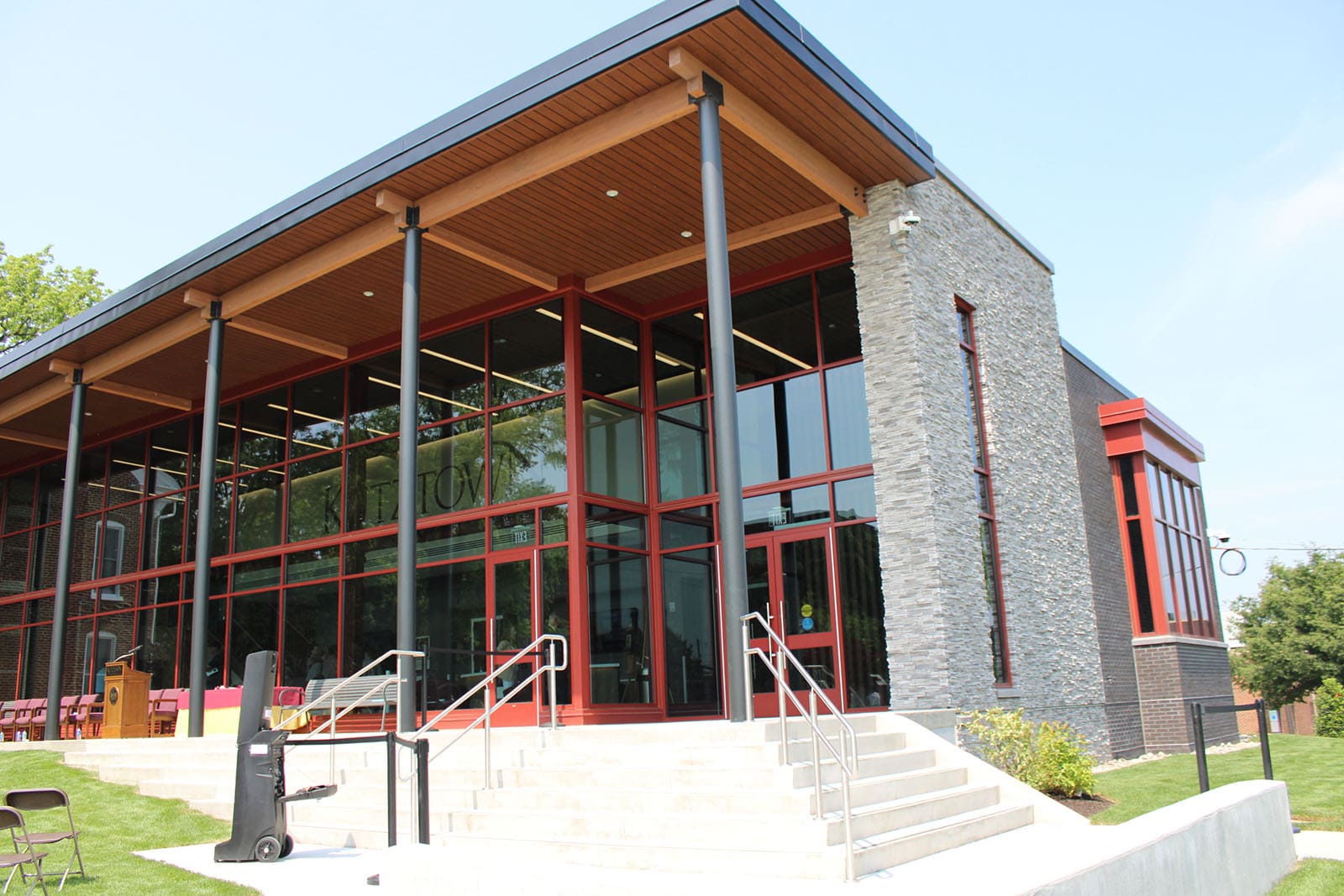 Located in Wernersville PA, this project on the Caron Foundation’s campus consisted of the new construction of a two story dining hall featuring full kitchen and open, aesthetically pleasing dining area featuring large glass curtain wall windows. The lower level includes offices, conference rooms and support spaces.