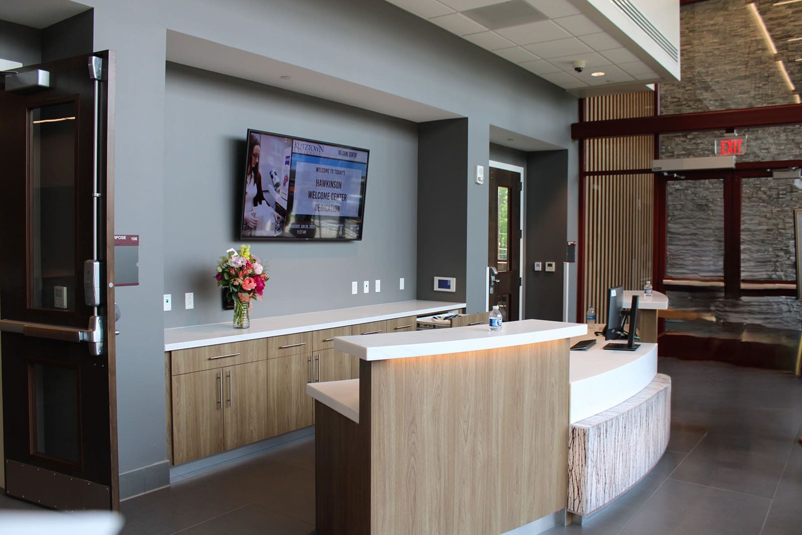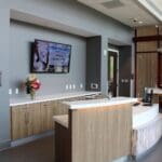 This upscale office building on the outskirts of Allentown features many Fortune 500 Companies. No expense was spared when it came to upgrading the washrooms on all three levels of this building. Each washroom features a new seamless Britannica Quartz countertop with accent lighting and newly released, custom designed Eclipse bath partitions.